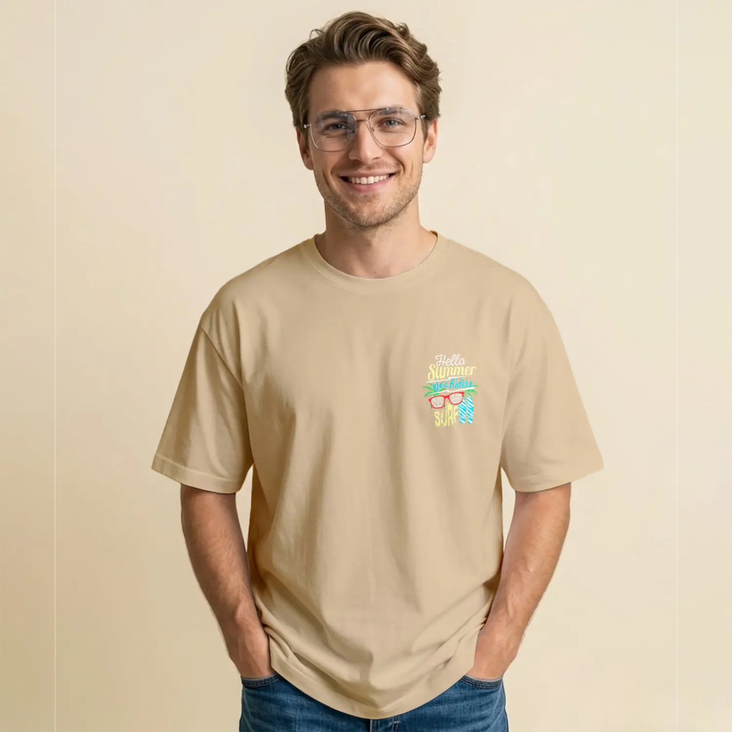 Yazı Baskılı Pudra Renk Erkek Tişört