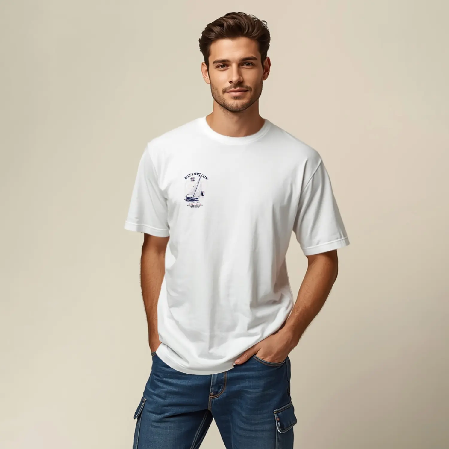 Yelkenli Tekne Baskılı Erkek Tişörtü