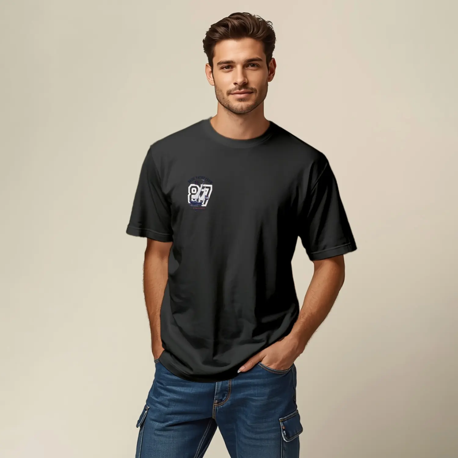 Yelkenli ve 97 Sayı Baskılı Erkek Tişört